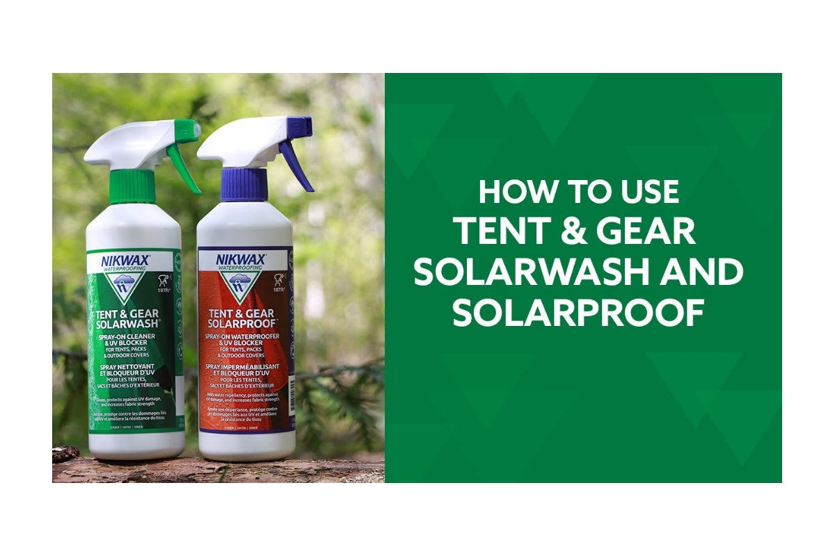 Nikwax Tent & Gear SolarWash has been specifically designed and optimized for outdoor equipment to clean effectively, revive water repellency (DWR) and add ultraviolet (UV) protection.. Nikwax Tent & Gear SolarWash can be applied to wet or dry fabrics. If your equipment is wet there is no need to wait for it to dry before you treat it with Nikwax Tent & Gear SolarWash